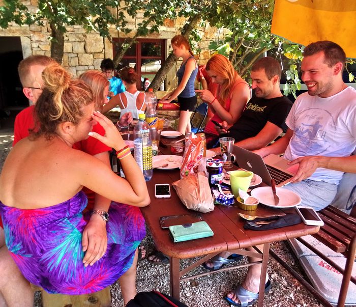 Ranná pohoda na našej základni pri Jame Baredine.....