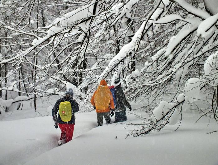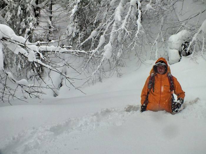 Cez snehovú džunglu sme sa miestami ťažko predierali a sneh poriadne padal za krky.....