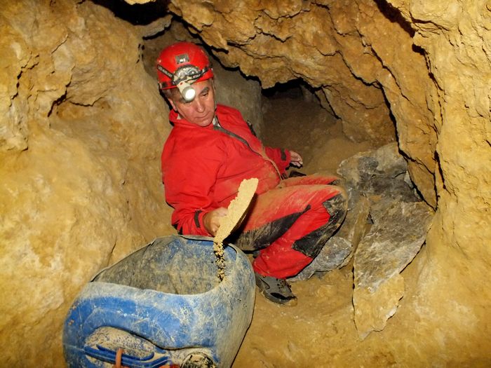 Erodovaný šikmý komín zanesený sedimentom vedúcim do masívu tu teda máme ostáva dúfať, že geofyzikálne
